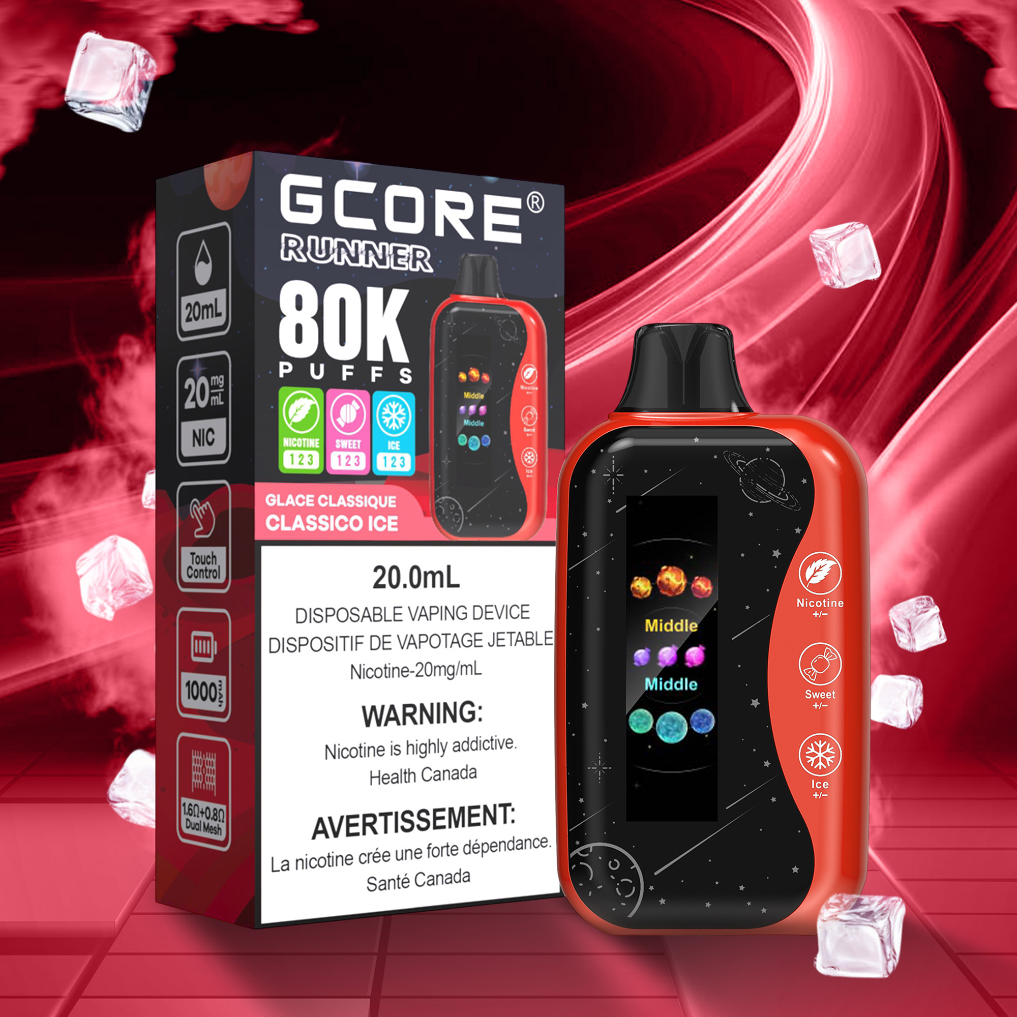 - Vaping Mode: Three (NICOTINE, SWEET & ICE)
